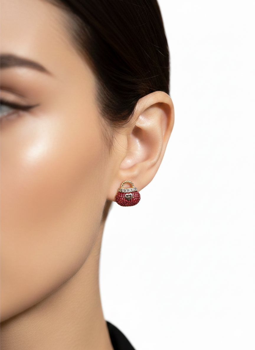 گوشواره کیف و کفش فرانسوی قرمز جنس استیل