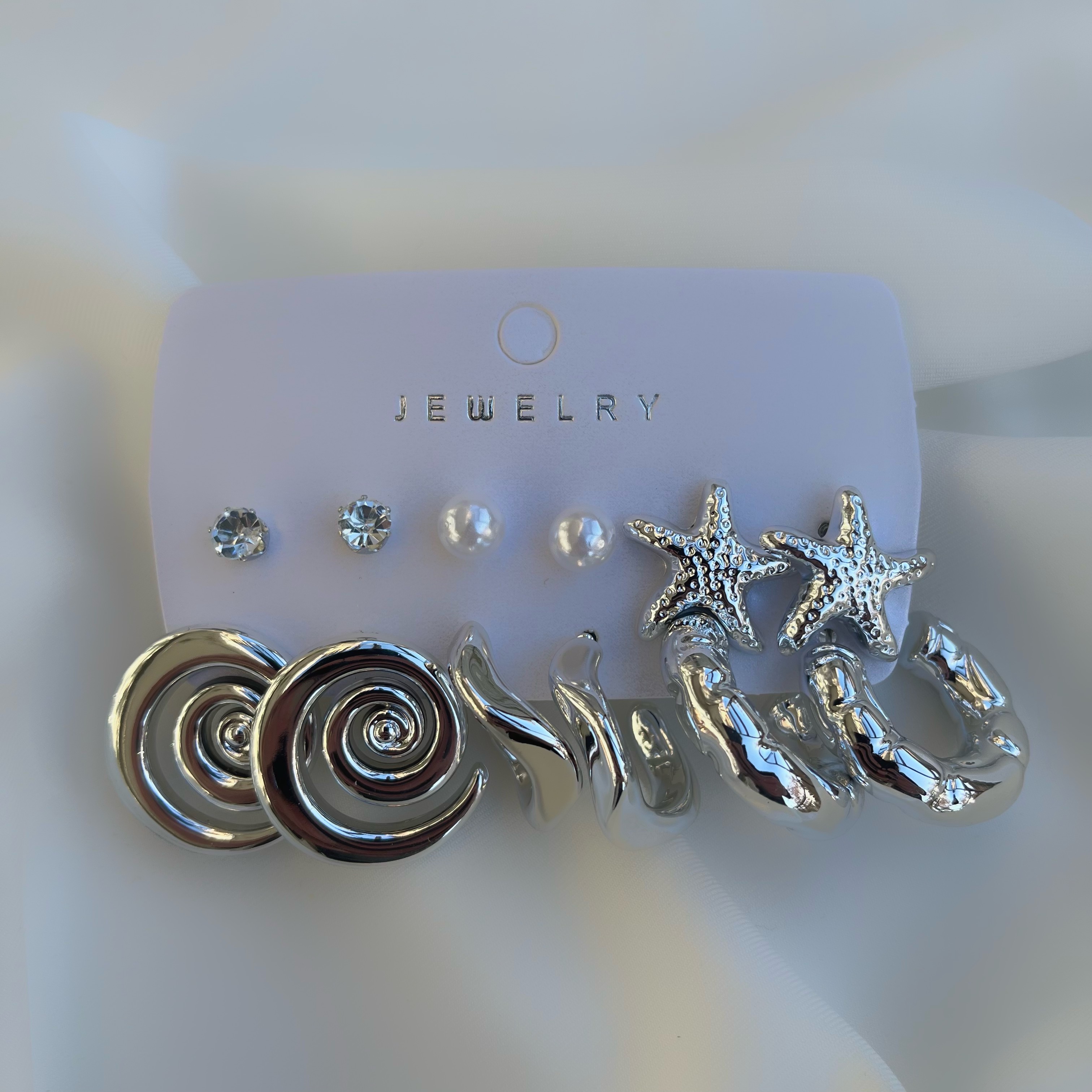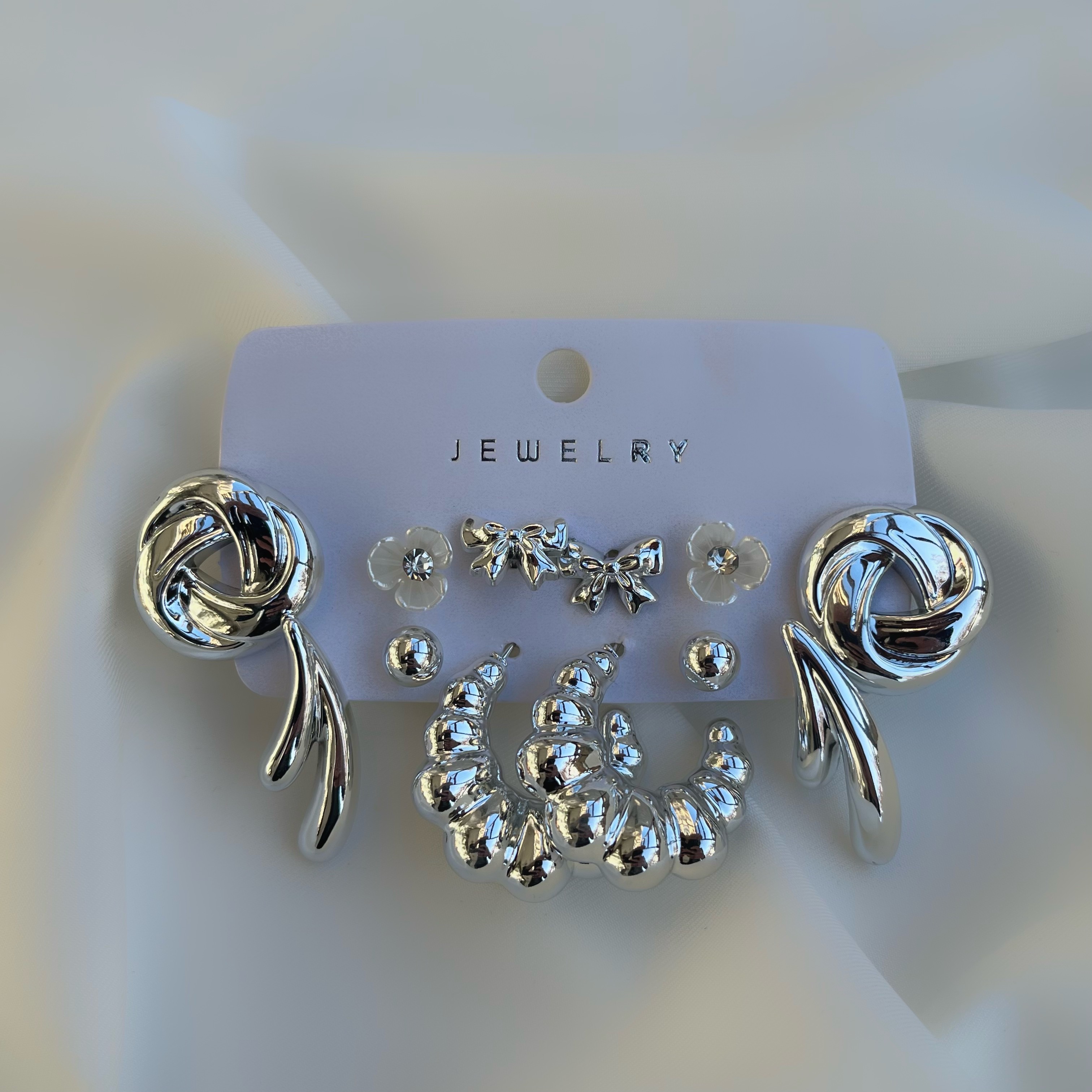 پک گوشواره ۶عددی آبکاری نقره ضد حساسیت